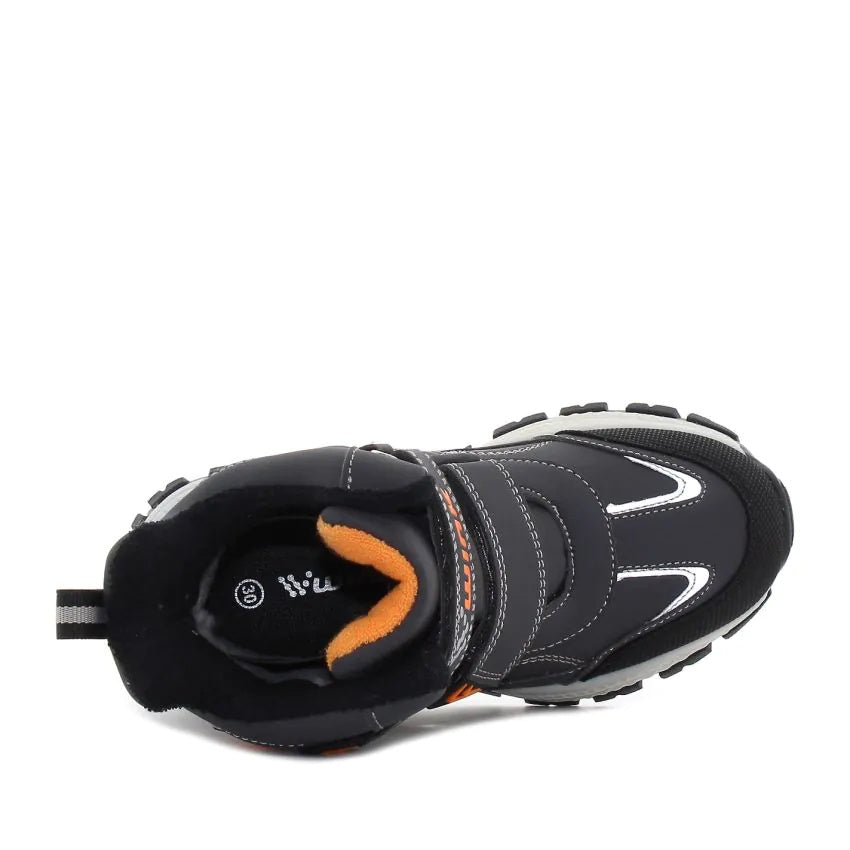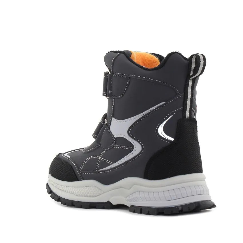 Moderna bebi čizmica za dječake. Ovaj model ima dva kaiša na čičak i rajfešlus, tako da je veoma praktična za oblačenje. Dopla je, jer je futrovana fleece (flisom).