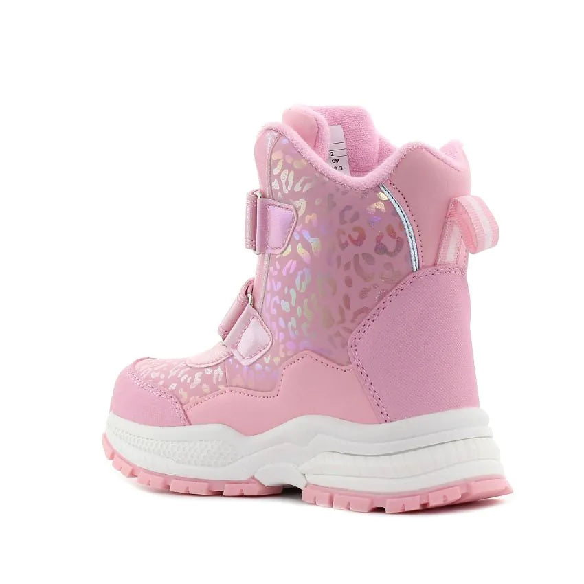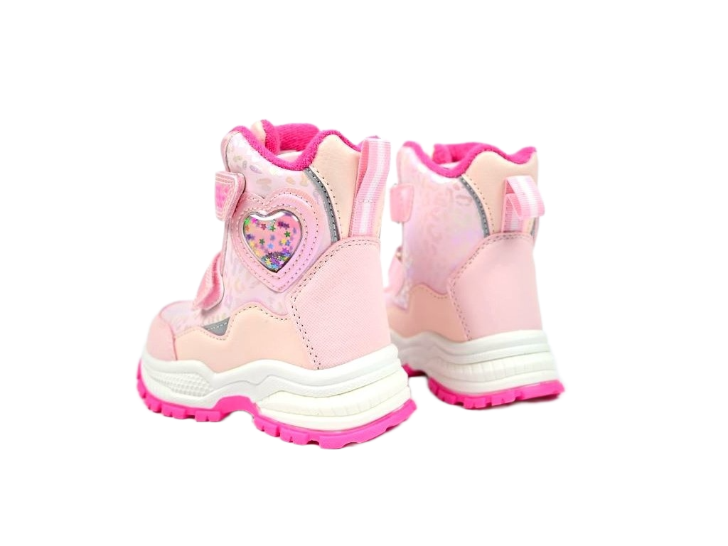 Moderna bebi čizmica za djevojčice. Ovaj model ima dva kaiša na čičak, tako da je veoma praktična za oblačenje. Futrovana je sa fleece (flisom), pa je topla.