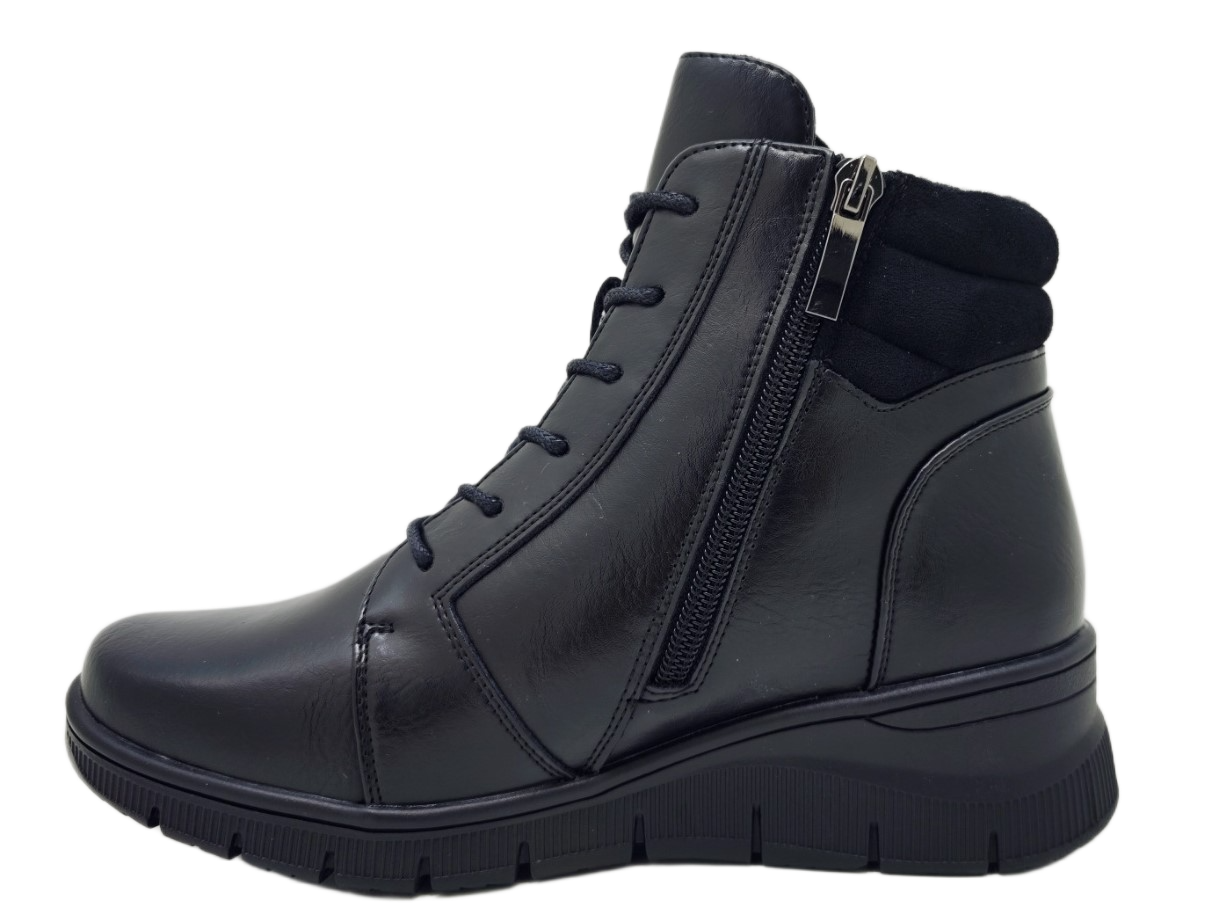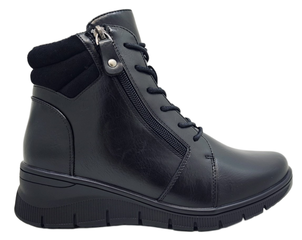 Predstavljamo vam savršene čizme za hladne dane – elegantne, udobne i tople. Izrađene od eko kože, ove čizme osiguravaju dugotrajnost i otpornost na vremenske uvjete.Moderan dizajn s platformom od 4Cm čine ih idealnim dodatkom svakoj odjevnoj kombinaciji, od ležernih do elegantnijih. Podstavljena unutrašnjost pruža toplinu i udobnost, dok čvrsta platforma osigurava stabilnost i udoban korak. Kombinacija vezica i patentnog zatvarača omogućava jednostavno obuvanje i savršeno pristajanje.