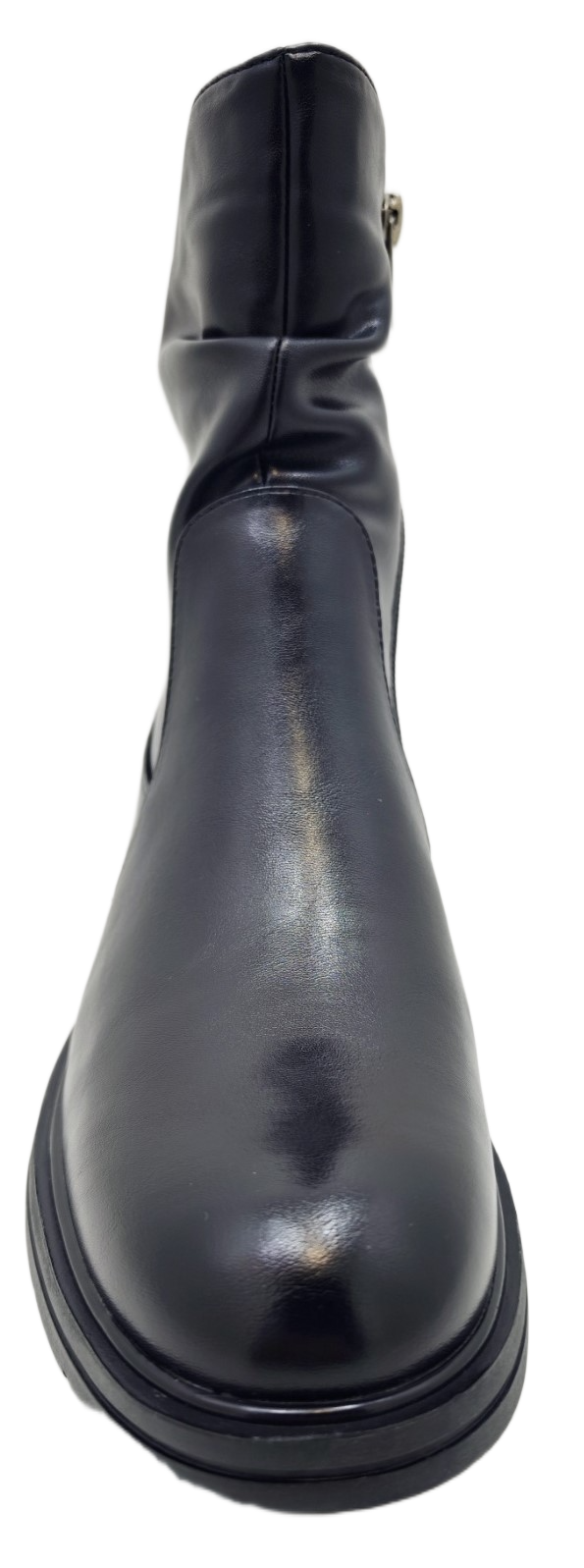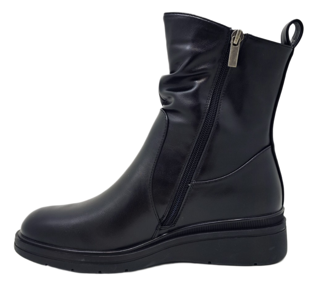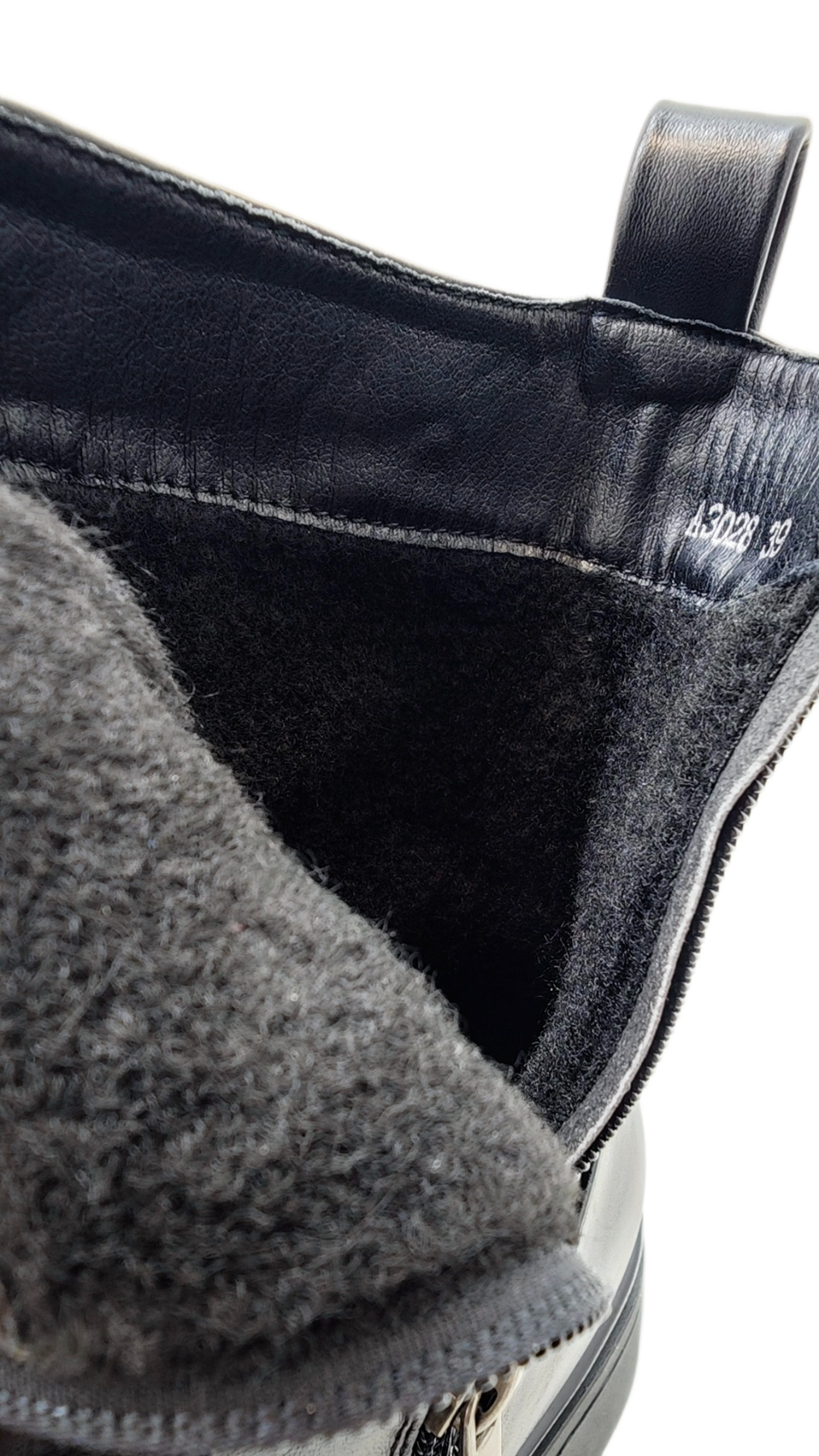 Ovaj model ženskih čizama savršeno spaja eleganciju i udobnost, idealan za modernu ženu koja cijeni stil i praktičnost. Izrađene od visokokvalitetnih materijala, ove čizme u tamnosmeđoj boji s blagim sjajem imaju jedinstven, naborani dizajn gornjeg dijela koji im daje sofisticiran i ležeran izgled. Deblji, ali elegantan đon osigurava stabilnost i udobnost tijekom cijelog dana, dok minimalistički detalji poput malog gumba na stražnjoj strani dodaju suptilan šarm. Lako se kombiniraju s različitim odjevnim kombinacijama, od casual do poslovnih, čineći ih neizostavnim dijelom svake garderobe.