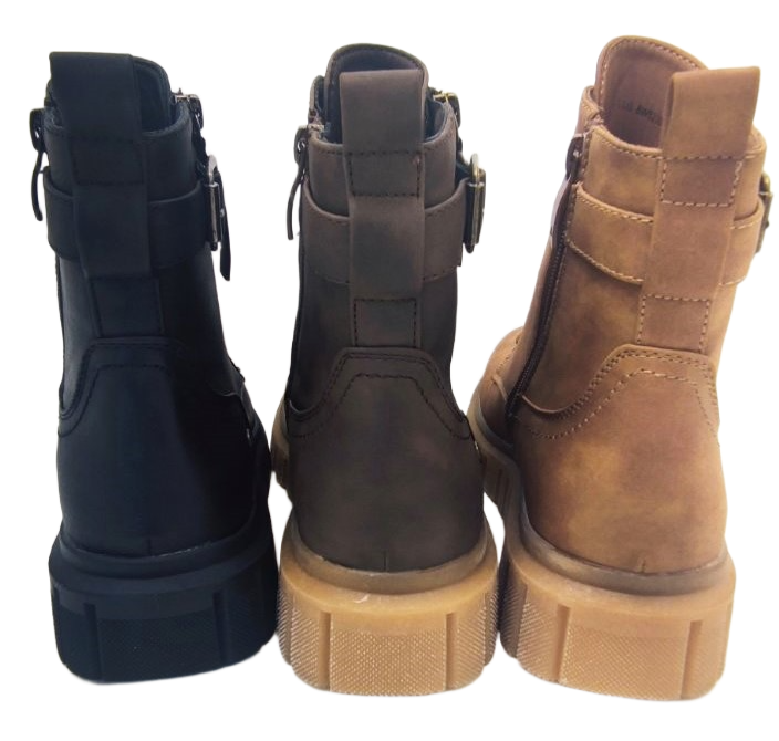Zakoračite sa stilom uz ove ženske gležnjače. Izrađene od sintetičkog materijala, ove su gležnjače savršene za ovu  sezonu. Robusne, moderne i praktične čizme dizajnirane su za žene koje traže spoj stila i udobnosti. Izrađene od kvalitetne eko kože sa pojačanim šavovima i čvrstim, ali savitljivim đonom, pružaju maksimalnu udobnost i stabilnost pri svakom koraku. Bočni zatvarač i dekorativne kopče dodaju moderan izgled i olakšavaju obuvanje. Dostupne u tri klasične boje: crna, tamno smeđa i svijetlo smeđa. Idealne za gradske šetnje, posao ili ležerne kombinacije.