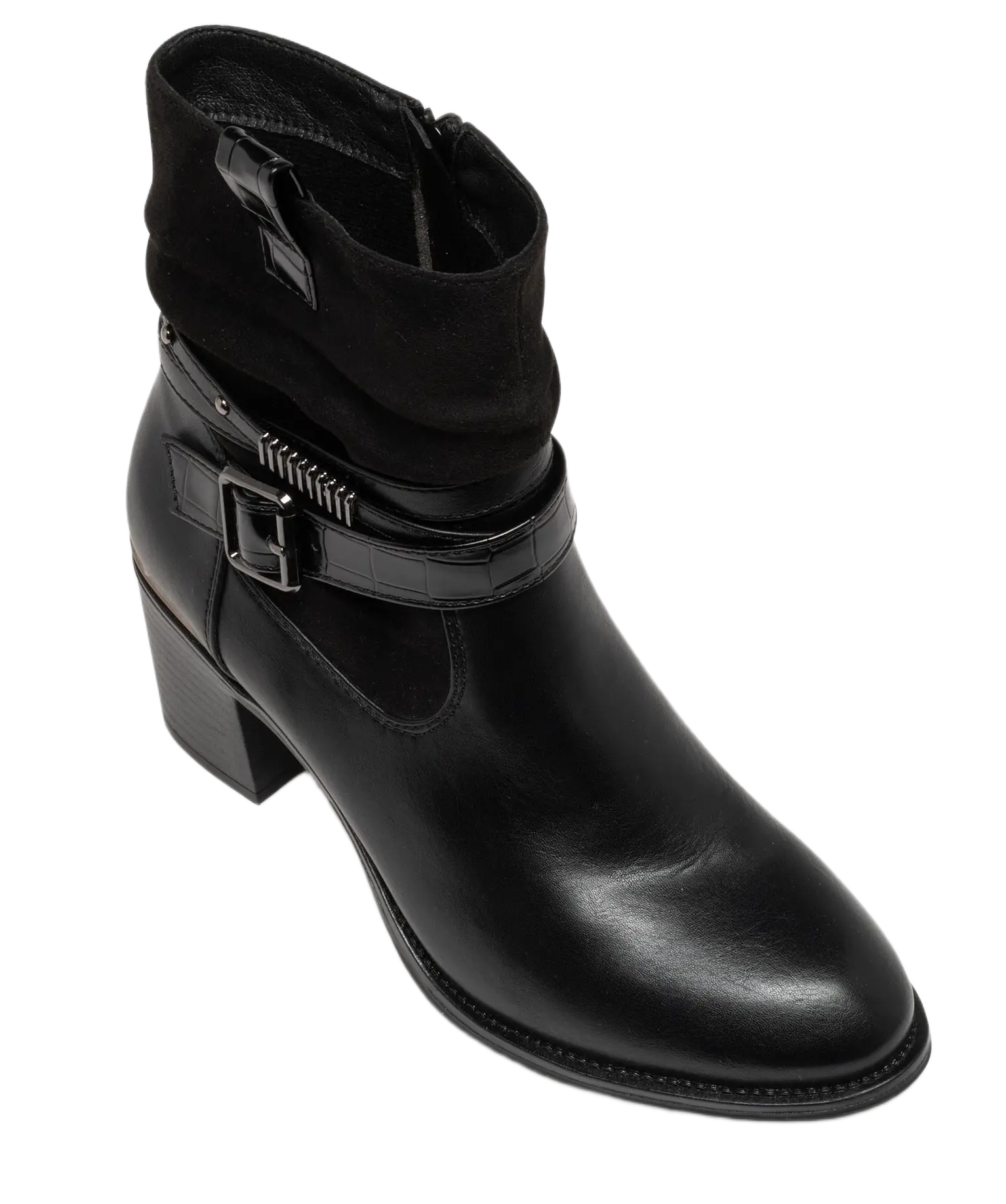Ove elegantne čizme s debelom petom i nabranim gornjim dijelom donose sofisticiranost svakom vašem koraku. Izrađene od kvalitetnog materijala, s detaljima poput kopči i remenčića s krokodilskim uzorkom, ove čizme su idealan izbor za modernu ženu koja cijeni stil i udobnost. Bilo da idete na posao ili u večernji izlazak, ove čizme će upotpuniti vašu odjevnu kombinaciju i osigurati da se osjećate samouvjereno i chic.
