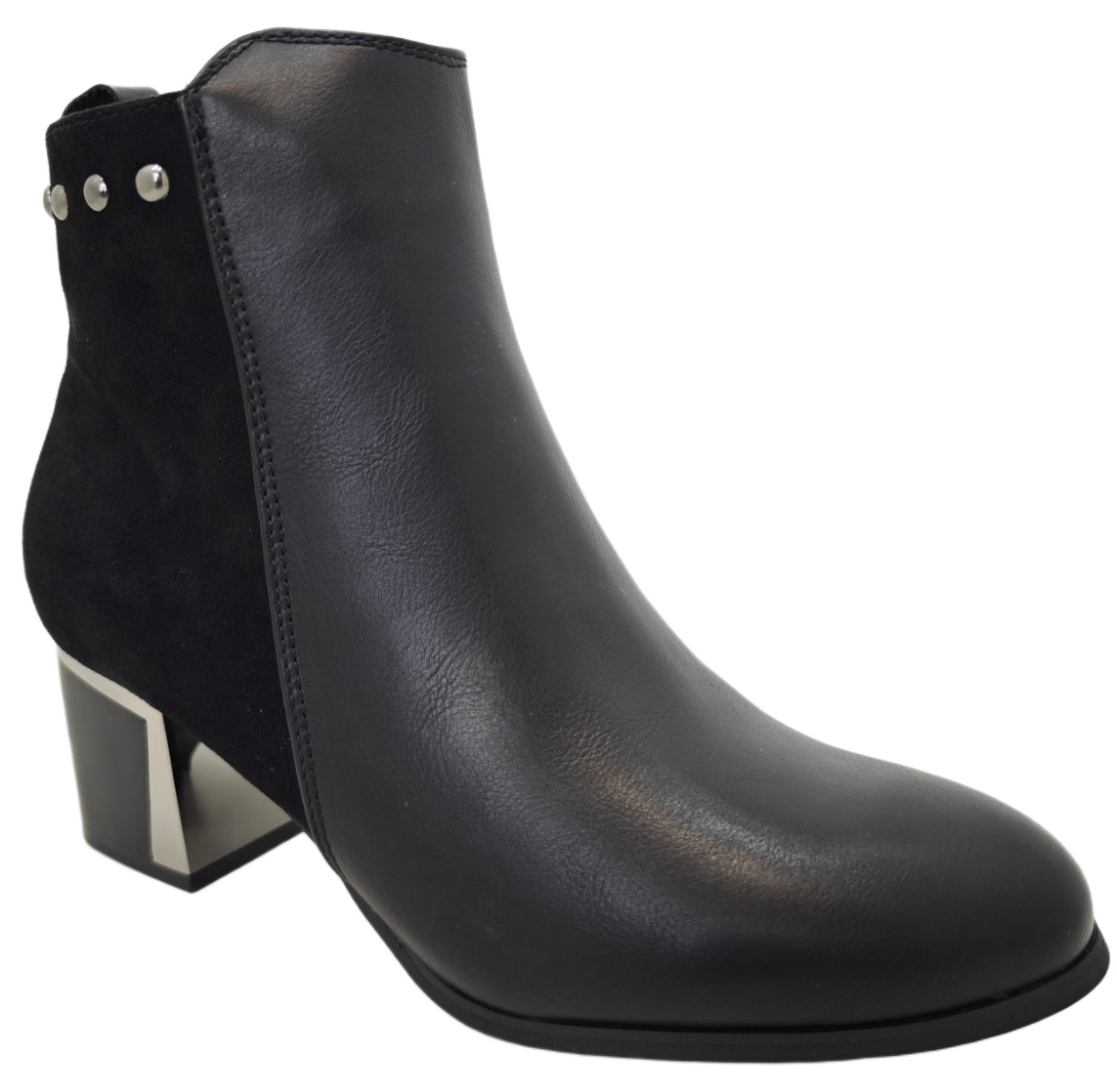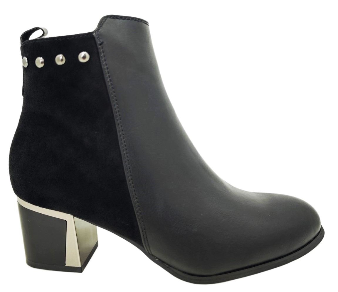 Predstavljamo kolekciju modernih ženskih gležnjača koje spajaju stil i udobnost, savršene za svaku priliku. Ovaj model je izradjen od kombinacije glatke umjetne kože (*PU) i umjetnog brušenog materijala, s elegantnim metalnim zakovicama na gornjem rubu i stabilnom petom s metalnim umetkom za sofisticirani izgled. Bilo da ih kombinirate uz kraće pantalone, suknje ili haljine, gležnjače će unijeti dozu elegancije i modernog stila u vašu svakodnevnu kombinaciju. Idealne su za prijelazno razdoblje i hladnije dane, osiguravajući vam udobnost i besprijekoran izgled.