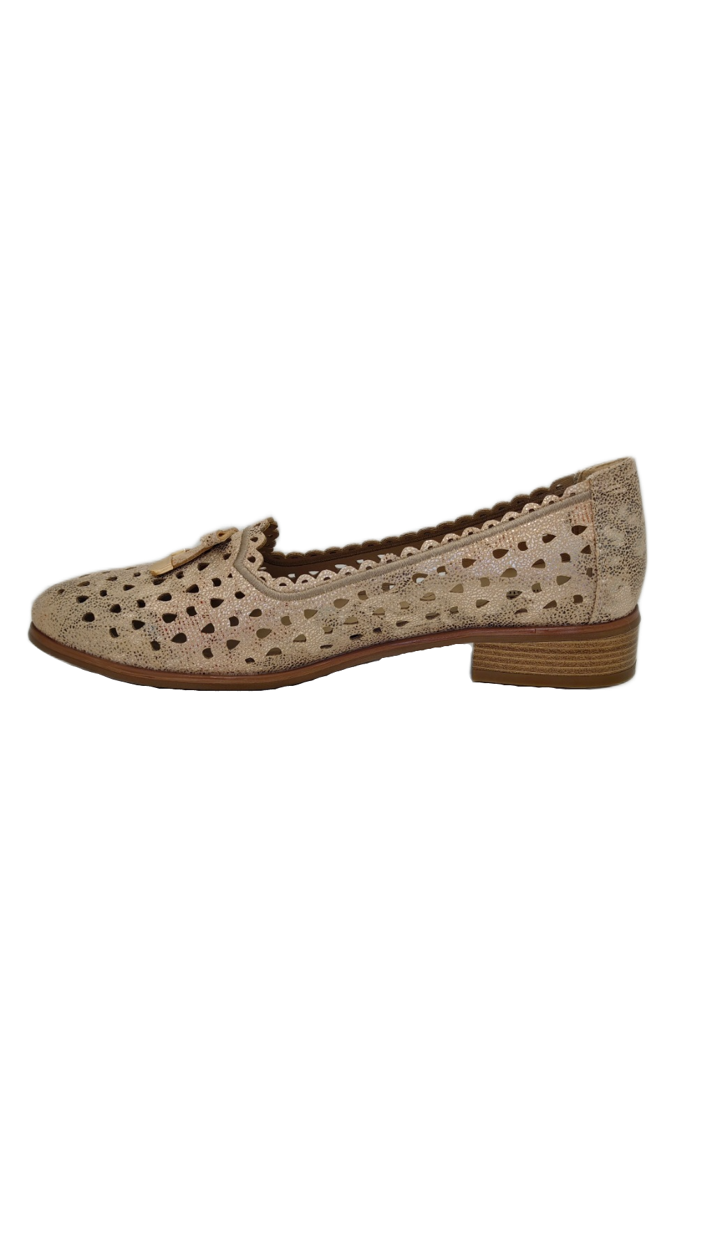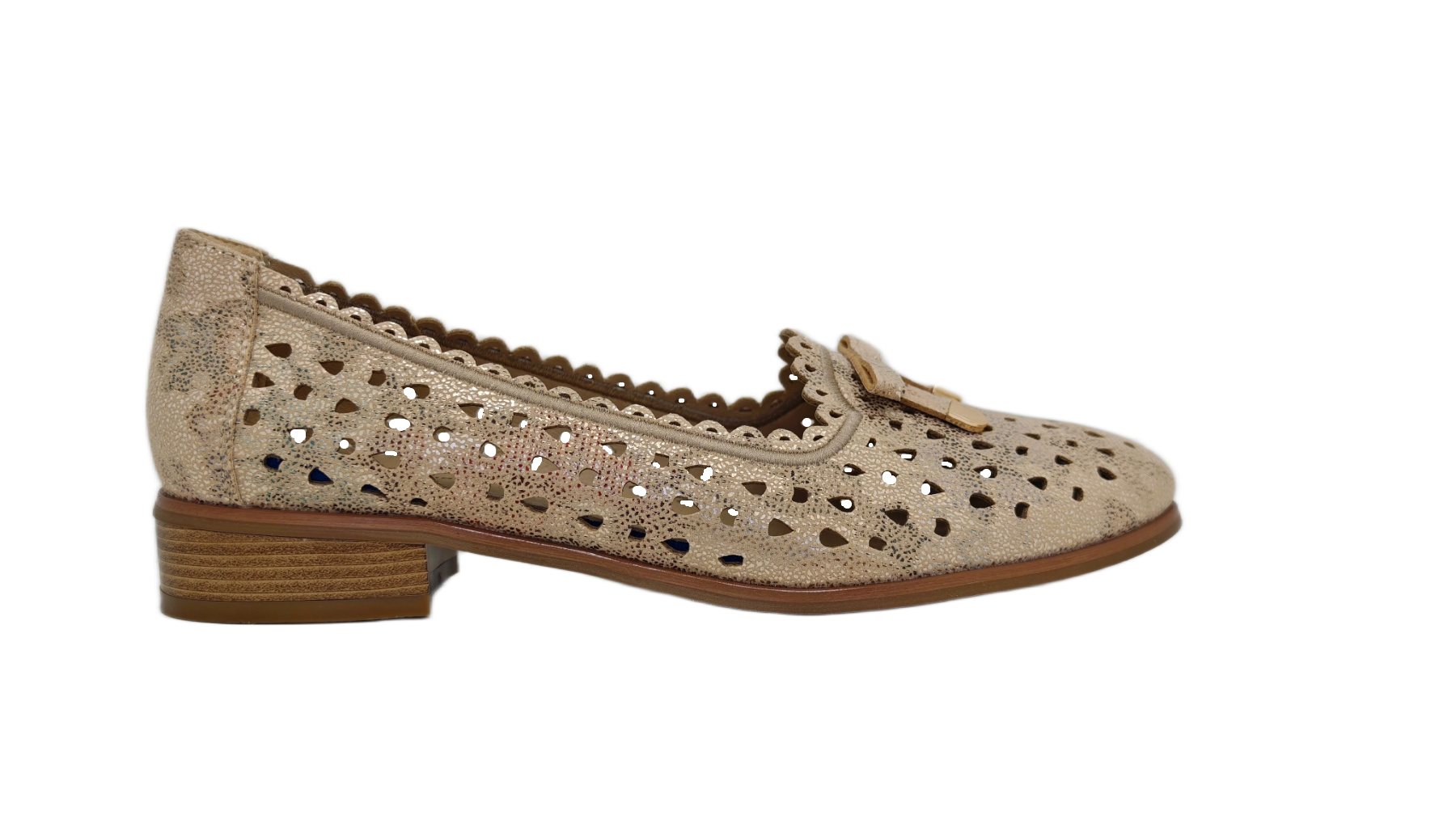 Ove otvorene mokasine su savršen izbor za tople dane za žene koje cijene stil i udobnost. Zahvaljujući prozračnom gornjem dijelu, pružaju udobnost čak i kada se nose duže vrijeme. Kožni uložak pruža mekoću i amortizaciju, a niska, ravna peta čini cipele savršenim za svakodnevnu upotrebu. Njihove raznobojne pastelne boje i cvjetni izrezi daju suptilan, ženstveni šarm, što ih čini idealnim izborom za ljetni stajling. Ove raznobojne slip-on cipele savršeno idu uz lagane, prozračne haljine, lanene pantalone ili klasične farmerke. Zahvaljujući svojim pastelnim nijansama, uklapaju se u mnoge ljetne stilove, dodajući im nježan, romantičan karakter. Savršeno za ležerne i elegantnije odjevne kombinacije.