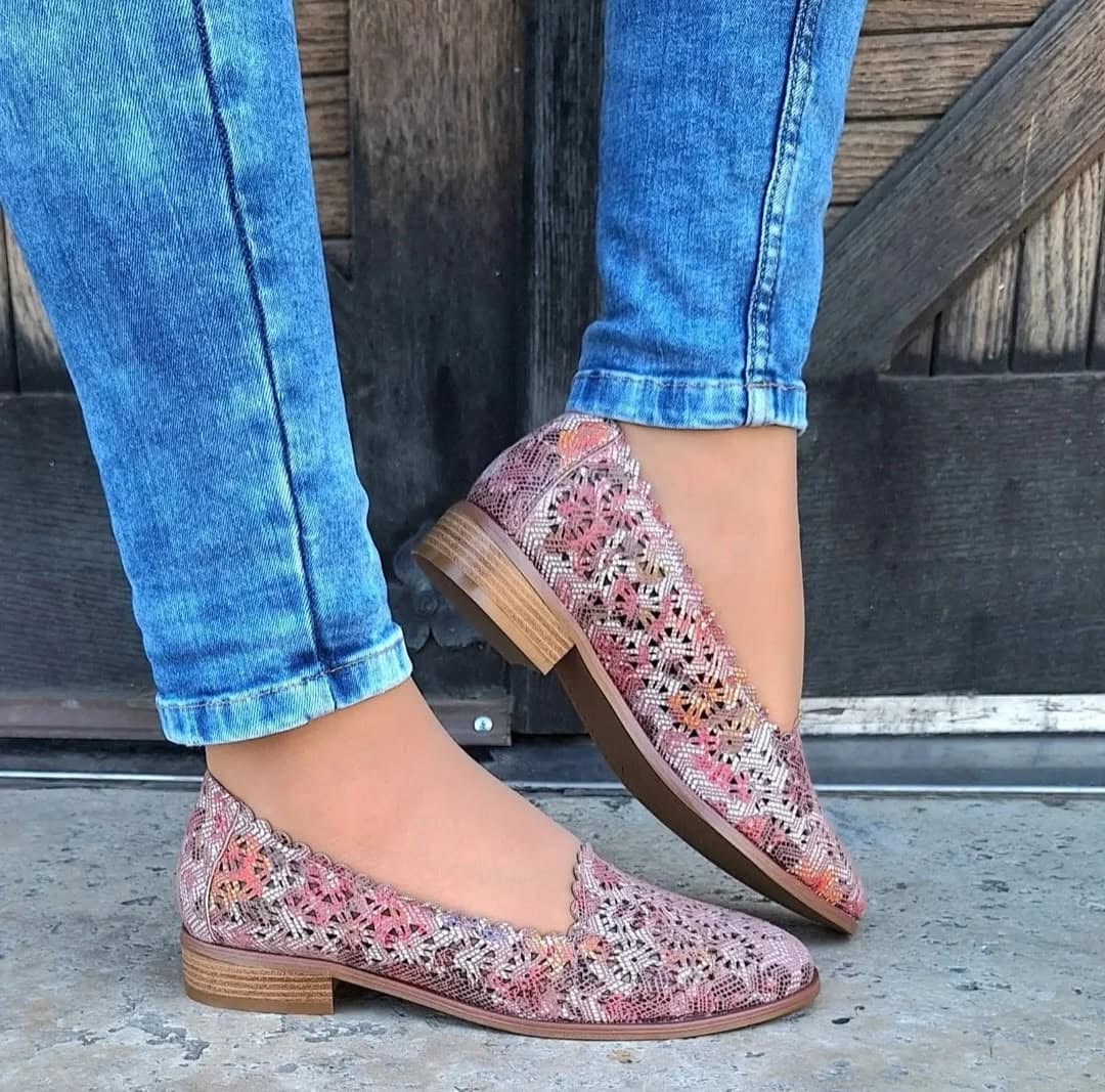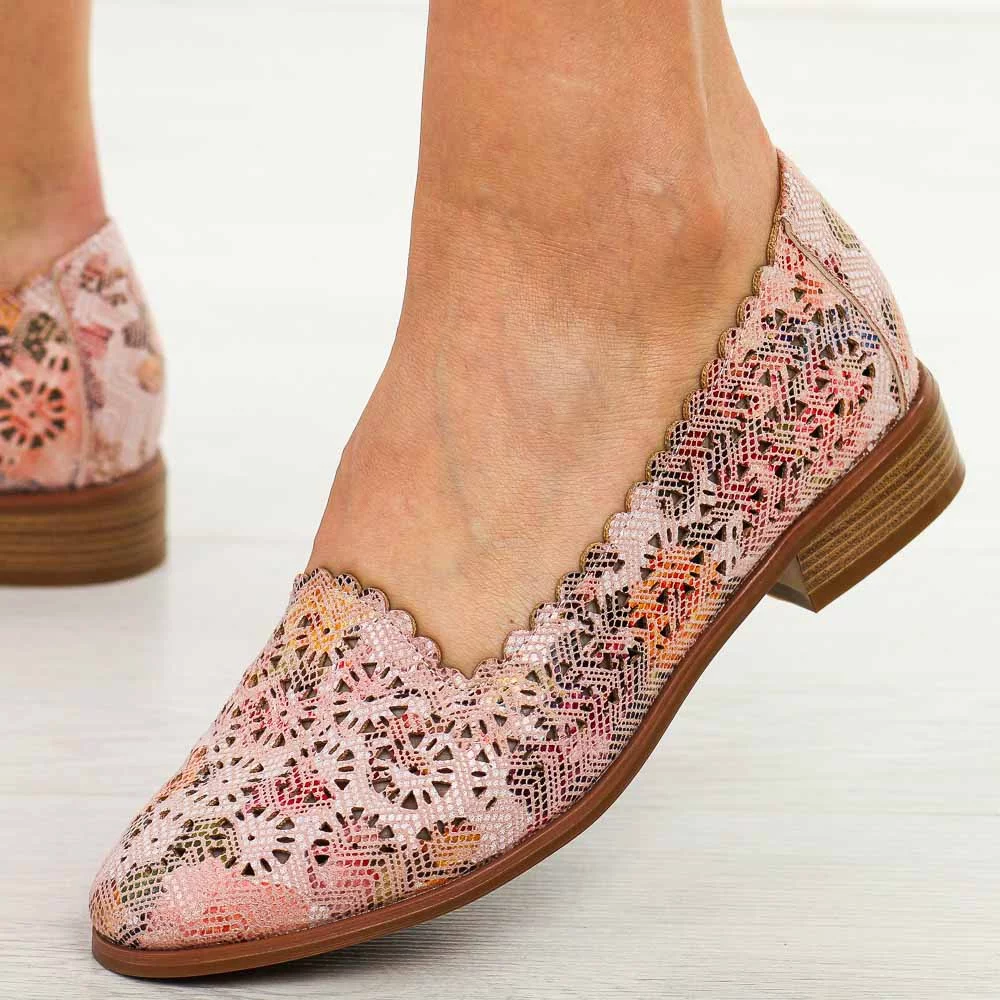 Ove otvorene mokasine su savršen izbor za tople dane za žene koje cijene stil i udobnost. Zahvaljujući prozračnom gornjem dijelu, pružaju udobnost čak i kada se nose duže vrijeme. Kožni uložak pruža mekoću i amortizaciju, a niska, ravna peta čini cipele savršenim za svakodnevnu upotrebu. Njihove raznobojne pastelne boje i cvjetni izrezi daju suptilan, ženstveni šarm, što ih čini idealnim izborom za ljetni stajling. Ove raznobojne slip-on cipele savršeno idu uz lagane, prozračne haljine, lanene pantalone ili klasične farmerke. Zahvaljujući svojim pastelnim nijansama, uklapaju se u mnoge ljetne stilove, dodajući im nježan, romantičan karakter. Savršeno za ležerne i elegantnije odjevne kombinacije.