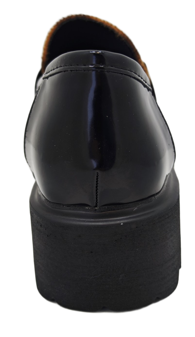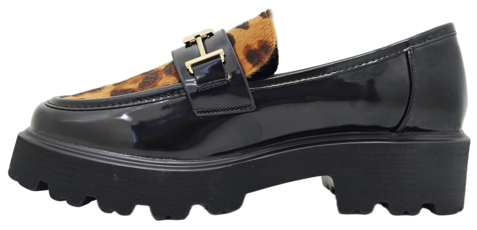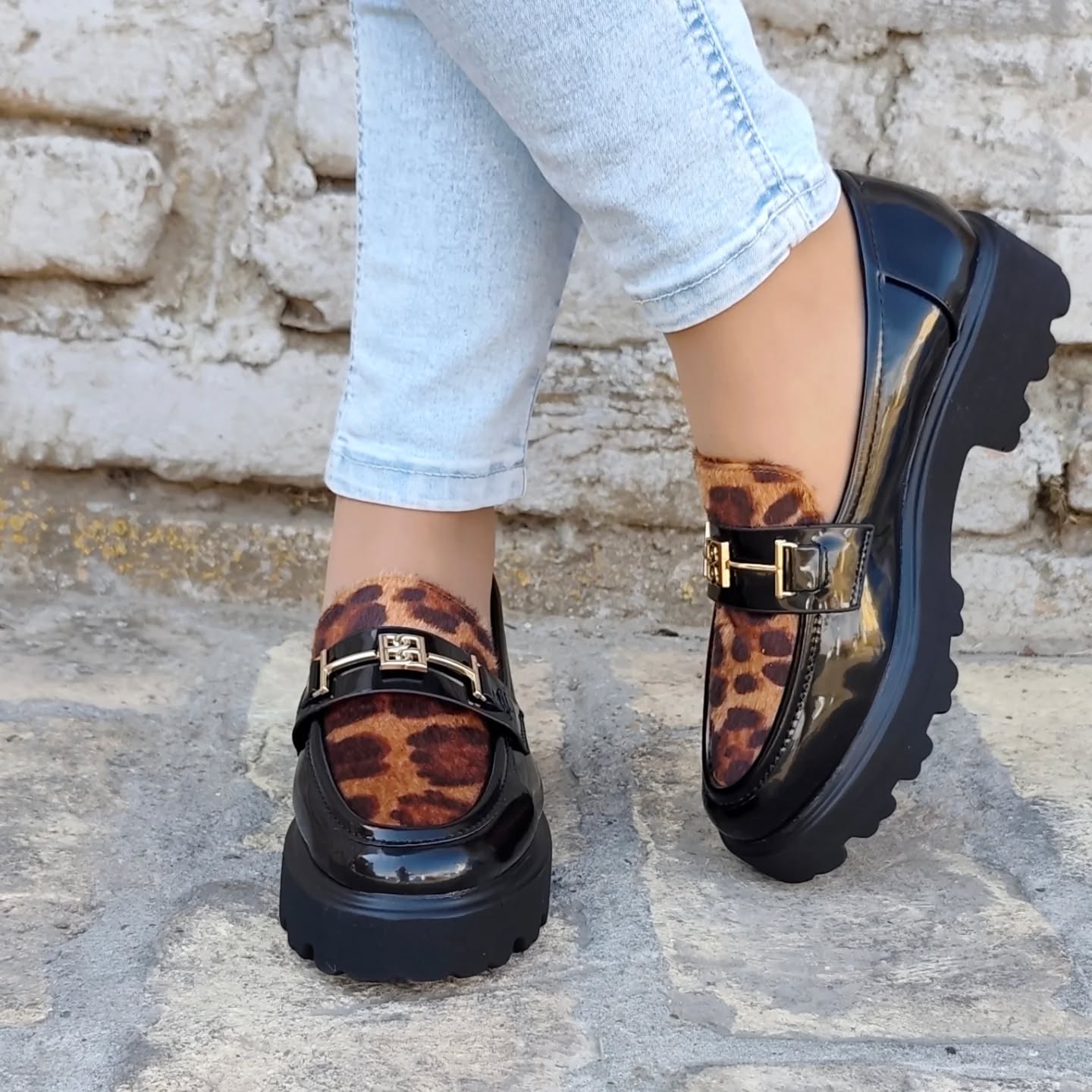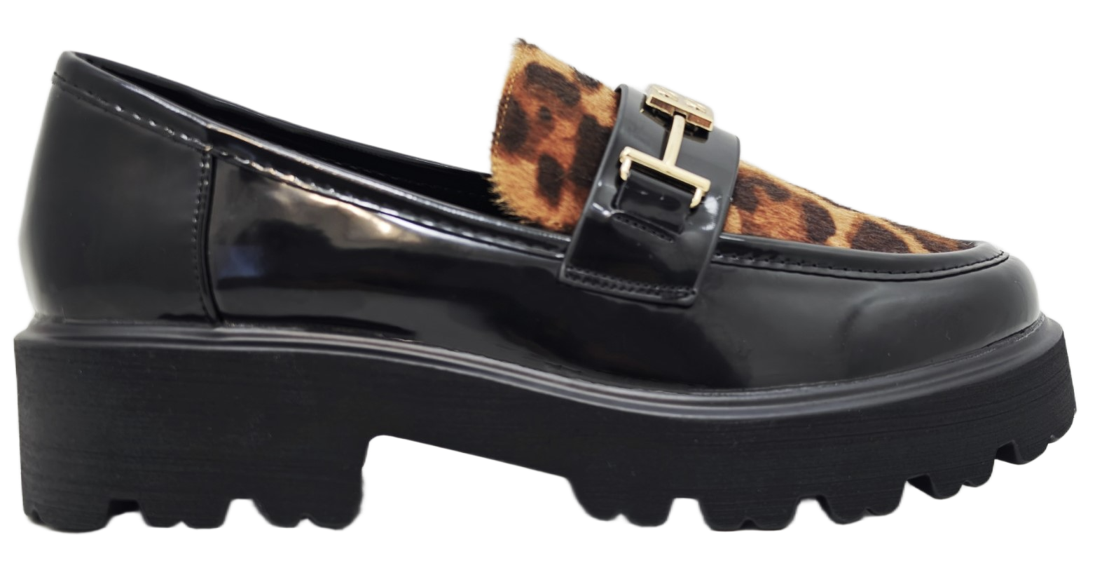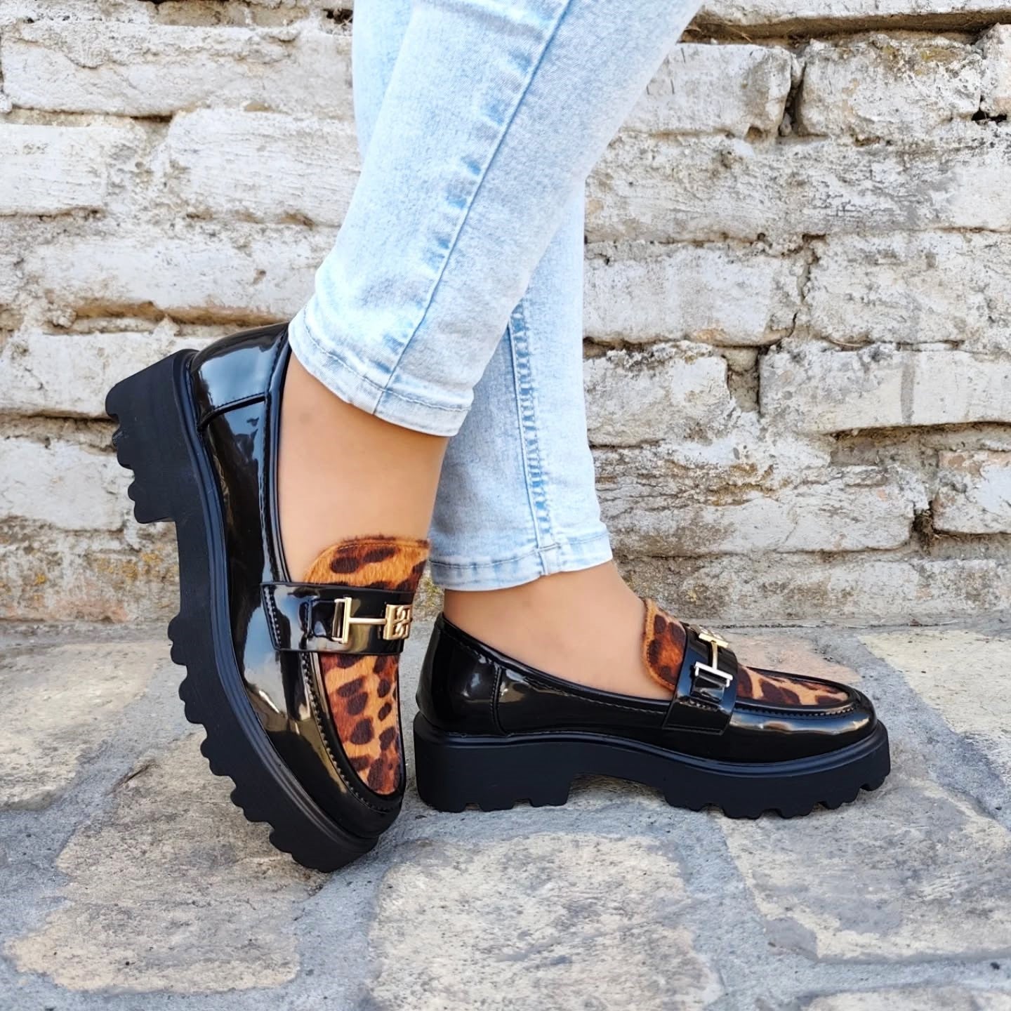 Predstavljamo elegantne ženske mokasine s platformom, savršen spoj klasičnog stila i modernog dizajna. Ove lakirane mokasine crne boje ističu se upečatljivim detaljem leopard uzorka na gornjem dijelu, dodajući dašak divlje elegancije vašem izgledu. Zlatna metalna kopča na prednjoj strani dodatno naglašava sofisticiranost. Debela, robusna platforma s izraženim potplatom osigurava udobnost i stabilnost tijekom cijelog dana, dok istovremeno pruža trendi i odvažan izgled. Idealne za svakodnevne kombinacije, ove mokasine lako se uklapaju u poslovni ili casual stil.