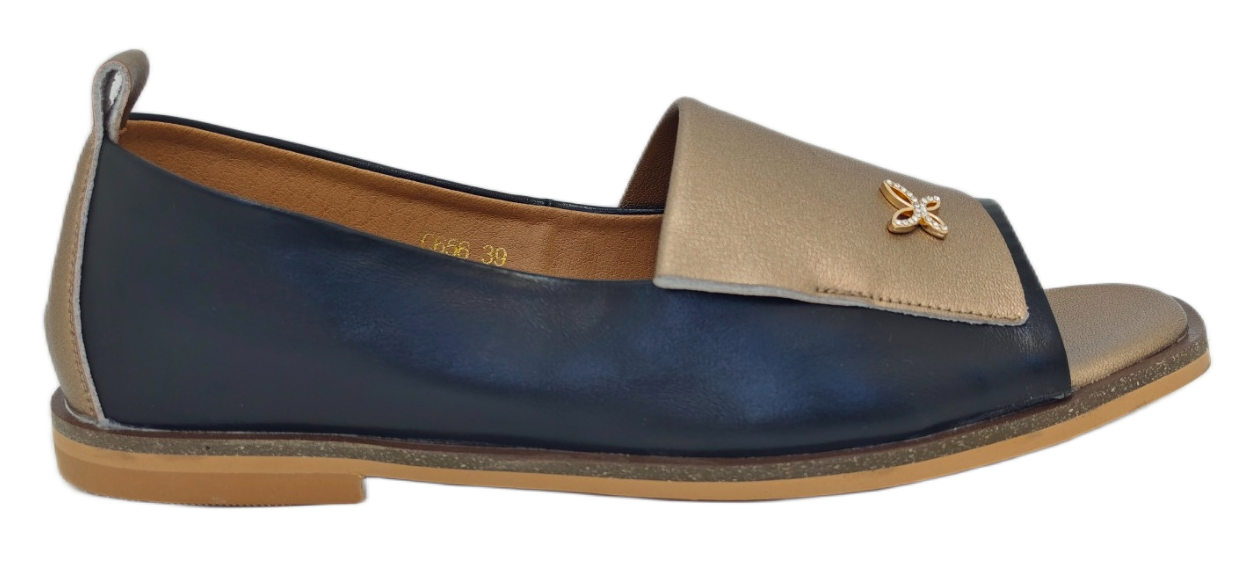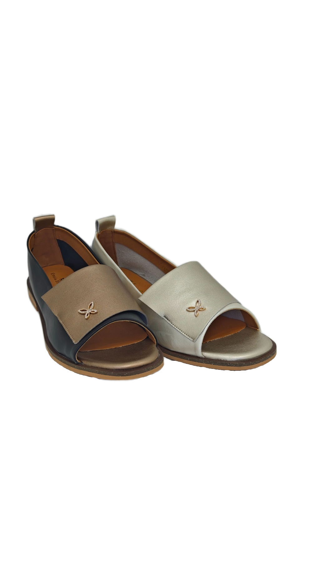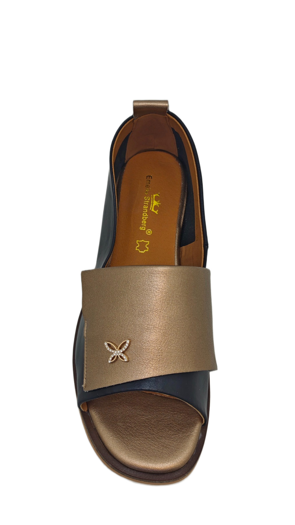 Ove elegantne ženske polusandale dio su nove kolekcije brenda Emelie Strandberg. Model karakterizira moderan dizajn s otvorenim prstima i diskretnim metalnim ukrasom u obliku leptira na prednjoj strani. Ovaj model je popularan izbor za proljetnu i ljetnu sezonu jer spaja eleganciju baletanki s prozračnošću sandala, lako se kombinirajući uz dnevne i večernje odjevne varijante