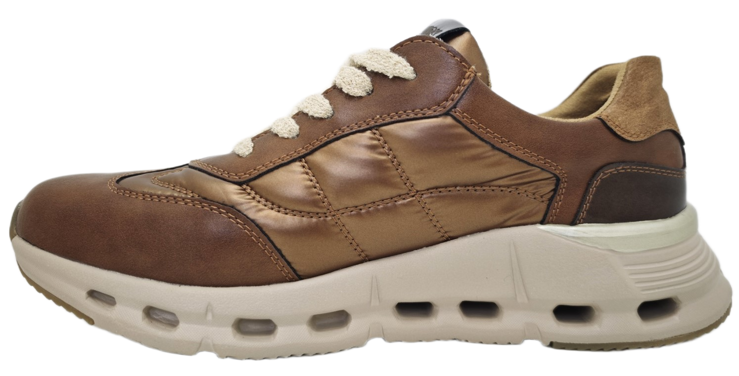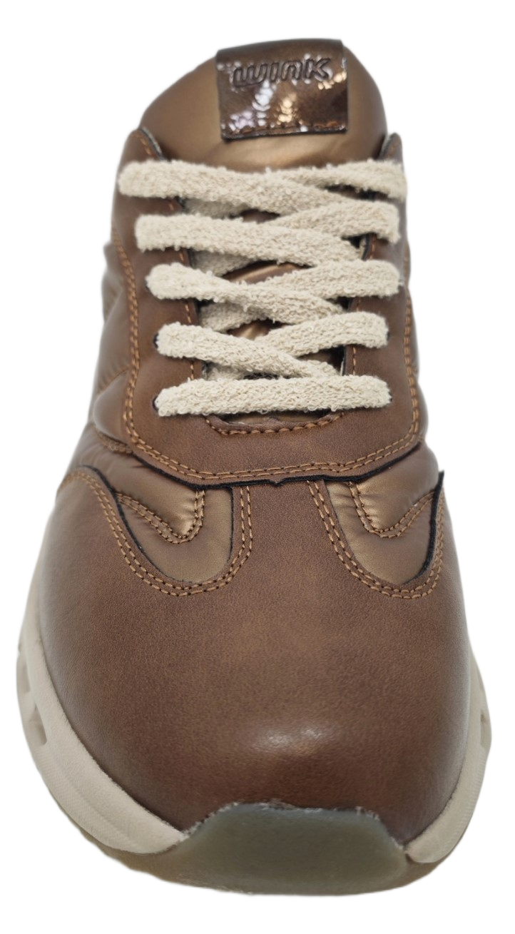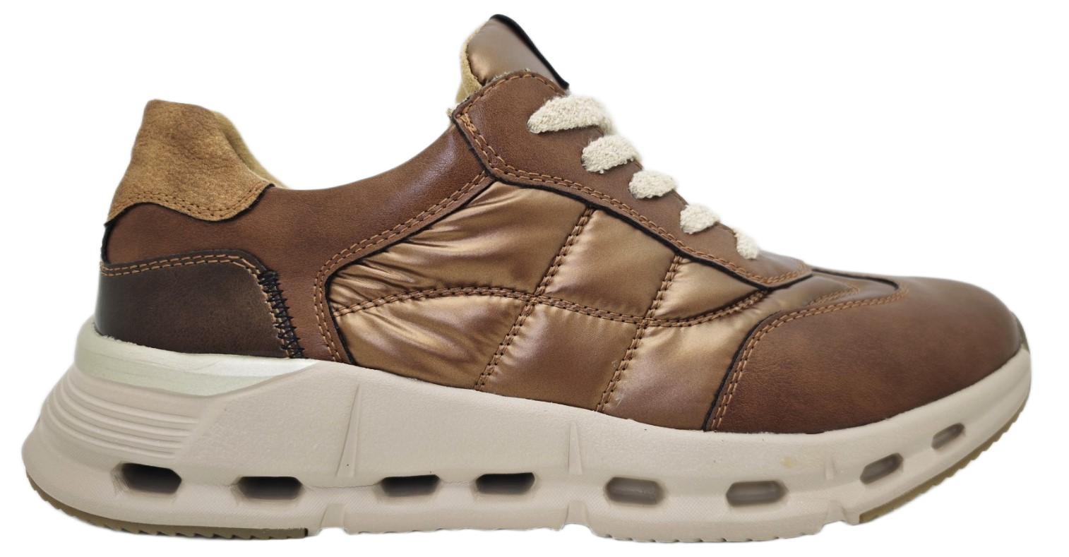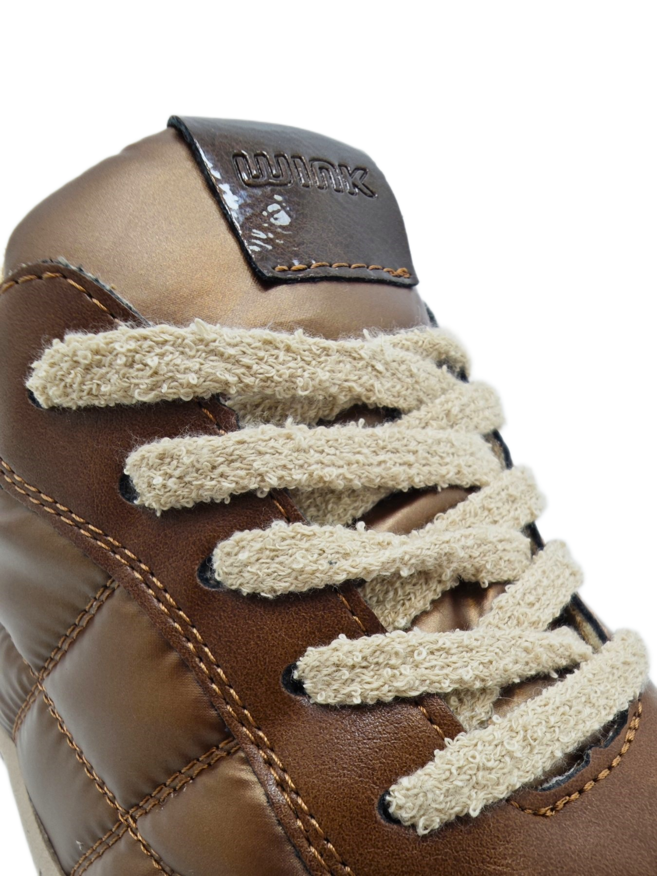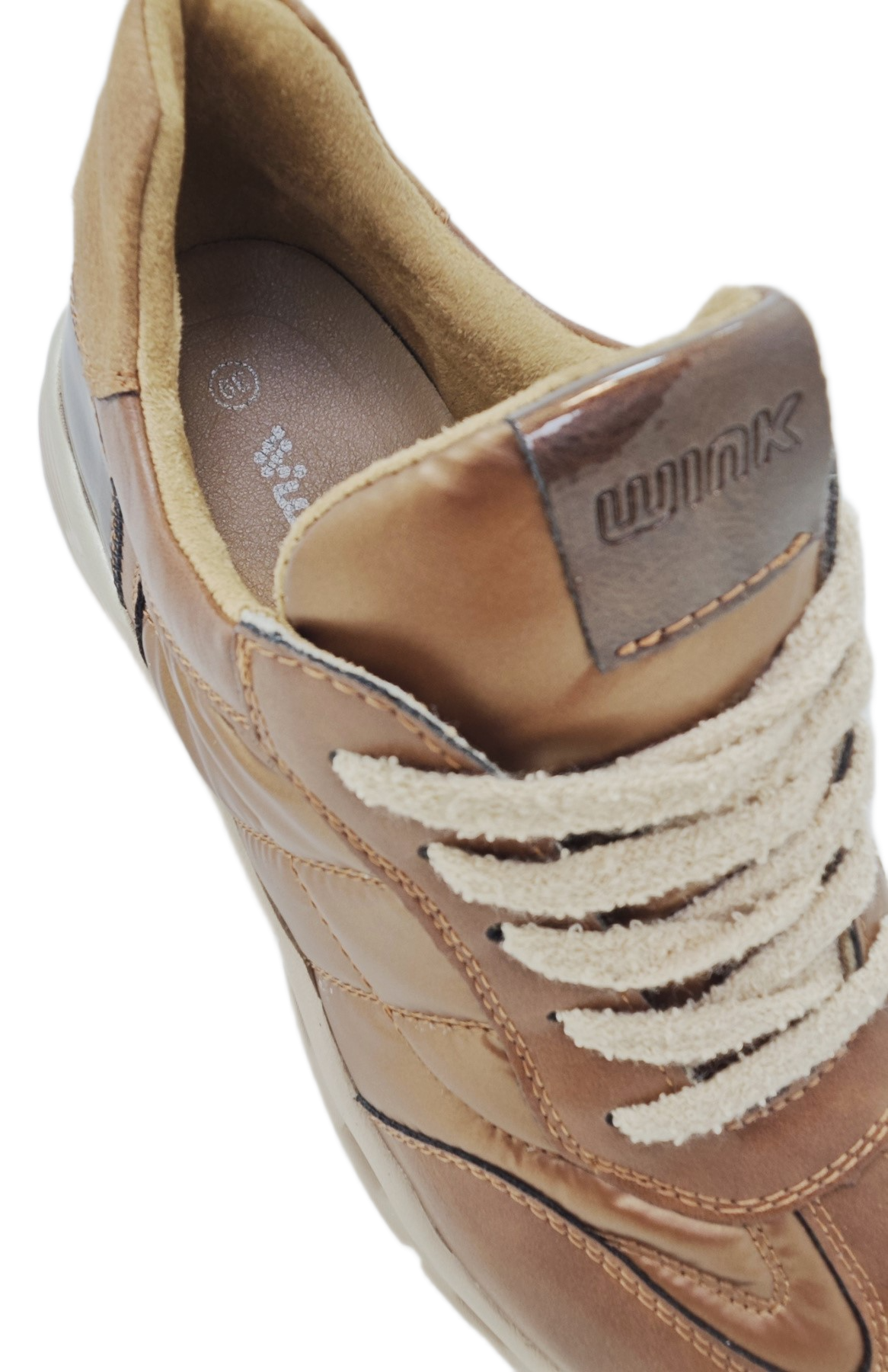 Casual ženske patika/cipele su idealan model za sve kombinacije modernog stila odjevanja. Moderne i udobne, savršene su spoj stila i funkcionalnosti. Gornjište je izrađeno od kombinacije glatke eko kože u smeđpj boji, te prošivanog tekstila bronzane boje s diskretnim sjajem. Unutrašnjost pruža toplinu i udobnost zahvaljujući mekanoj podstavi. Udoban deblji uložak, lagani đon od materijala EVA i gumiranim dijelovima protiv klizanja, pružiće vašoj nozi bolje prijanjanje i stabilnost pri svakom koraku.