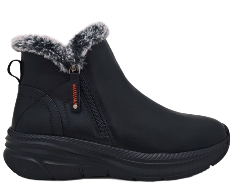 Pripremite se za hladnije dane s našim novim gležnjačama. Dizajnirane za maksimalnu udobnost, ove gležnjače savršen su spoj funkcionalnosti i modernog stila. Mekana krznena podstava osigurava da vaša stopala ostanu topla i udobna tijekom cijelog dana. Debeli đon pruža stabilnost i dodaje trendi notu vašem izgledu, dok crna boja omogućuje lako kombiniranje s bilo kojom odjevnom kombinacijom. Praktični bočni patentni zatvarač omogućuje brzo i jednostavno obuvanje i izuvanje, a guma sa unutarnje strane dodatnu udobnost pri nošenju.