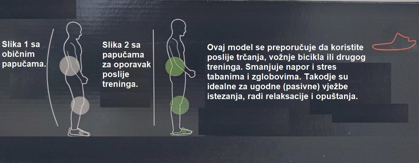 Papuče koje ispravljaju leđa i pružaju olakšanje prednjem dijelu stopala i zglobovima, tako da su savršeno riješenje za sve koji provode duže vreme na nogama. Njihov inovativni dizajn omogućava pravilan položaj kičme, što smanjuje napetost i umor tokom cijelog dana. Ove papuče su posebno razvijene kako bi podržale relaksaciju stražnjeg fascialnog lanca, što doprinosi boljoj cirkulaciji i smanjenju bolova u leđima i zglobovima. Savjetuje se korištenje za svakodnevnu upotrebu, posebno za poslove koji zahtijevaju dugotrajno stajanje, kao što su rad u trgovini, ugostiteljstvu ili bilo kojoj drugoj profesiji gde je stajanje neizbežno, kao i poslije aktivnih treninga radi cirkulacije i relaksacije. Tabanica u papučama je dizajniran tako da pruža dodatnu podršku prednjem dijelu stopala, čime se smanjuje pritisak na zglobove i omogućava udobnije kretanje. Na taj način, vaša stopala će se osjećati sviježije, a vi ćete imati više energije tokom dana.