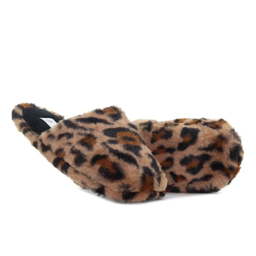Zakoračite u luksuzni komfor s našim novim papučama s uzorkom leoparda. Izrađene od mekanog umjetnog krzna, ove papuče su savršen spoj stila i udobnosti. Bilo da se opuštate kod kuće ili se pripremate za savršenu večer, ove papuče će vas grijati i učiniti da se osjećate lijepo.